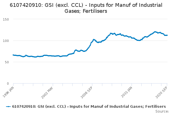 Download this time series6107420910: GSI (excl. CCL) - Inputs for Manuf of Industrial Gases; Fertilisers