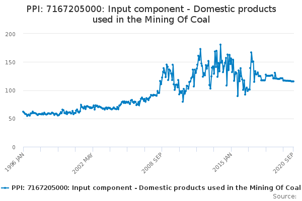 Download this time seriesPPI: 7167205000: Input component - Domestic products used in the Mining Of Coal