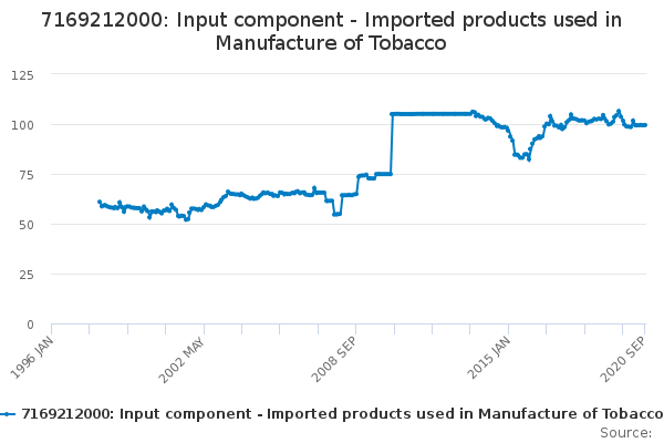 Download this time series7169212000: Input component - Imported products used in Manufacture of Tobacco