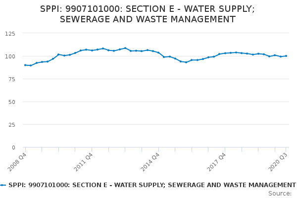 Download this time seriesSPPI: 9907101000: SECTION E - WATER SUPPLY; SEWERAGE AND WASTE MANAGEMENT