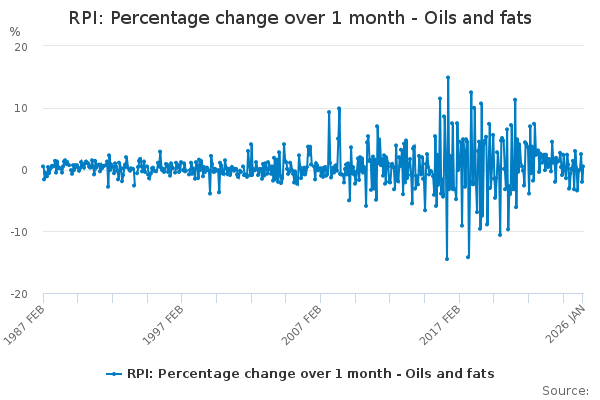 Download this time seriesRPI: Percentage change over 1 month - Oils and fats