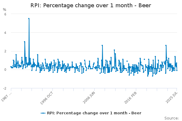 Download this time seriesRPI: Percentage change over 1 month - Beer