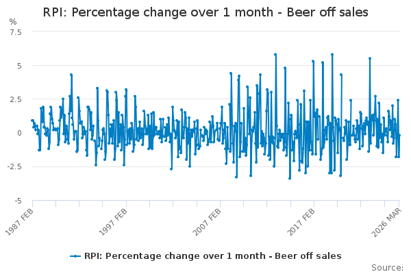 Download this time seriesRPI: Percentage change over 1 month - Beer off sales