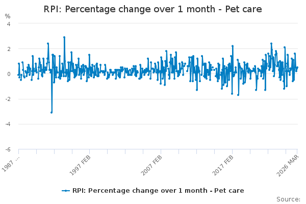 Download this time seriesRPI: Percentage change over 1 month - Pet care