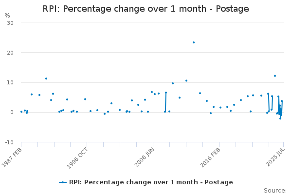 Download this time seriesRPI: Percentage change over 1 month - Postage