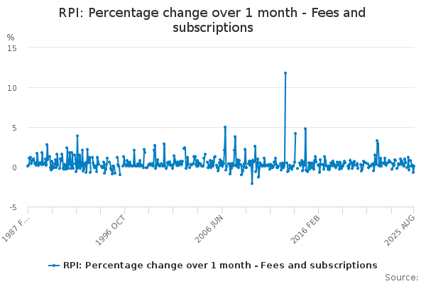 Download this time seriesRPI: Percentage change over 1 month - Fees and subscriptions