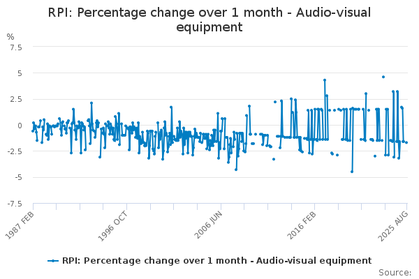 Download this time seriesRPI: Percentage change over 1 month - Audio-visual equipment