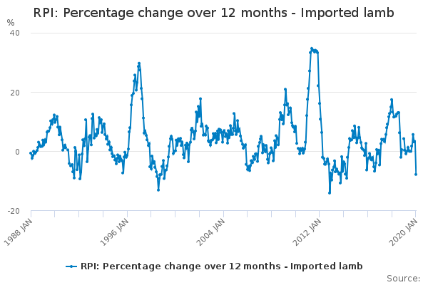 Download this time seriesRPI: Percentage change over 12 months - Imported lamb
