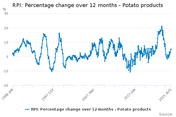 Download this time seriesRPI: Percentage change over 12 months - Potato products