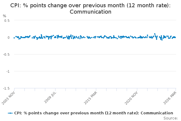 Download this time seriesCPI: % points change over previous month (12 month rate): Communication