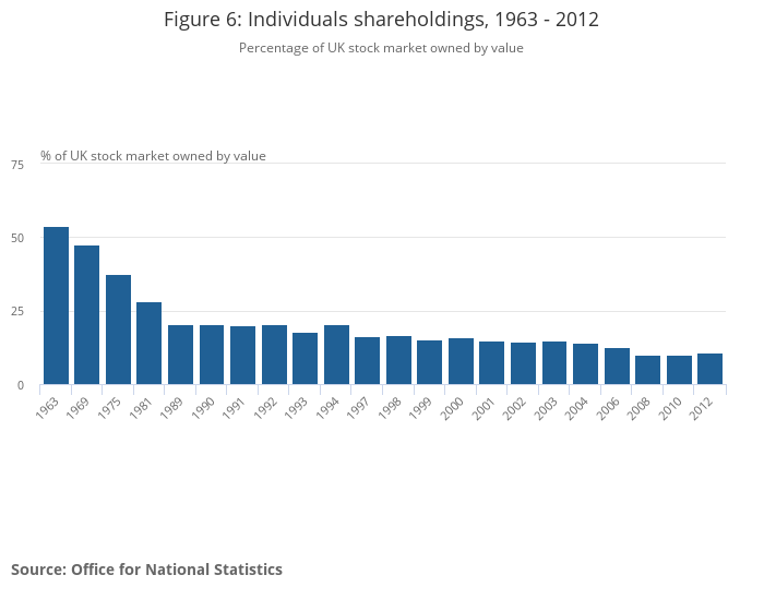 This statistical bulletin, produced by the Office for National Statistics every two years, shows the ownership of ordinary shares in quoted companies in the UK at 31 December 2012.