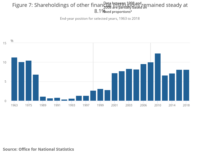 Other financial institutions based in the UK held their proportion of shares unchanged from 2016, at 8.1%.
