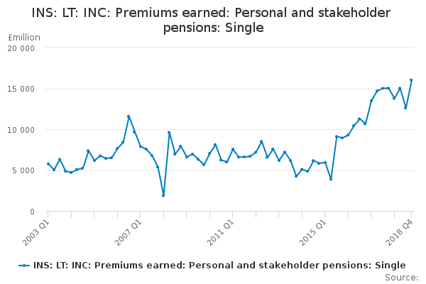 Download this time seriesINS: LT: INC: Premiums earned: Personal and stakeholder pensions: Single