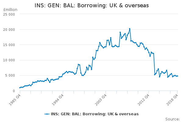Download this time seriesINS: GEN: BAL: Borrowing: UK & overseas