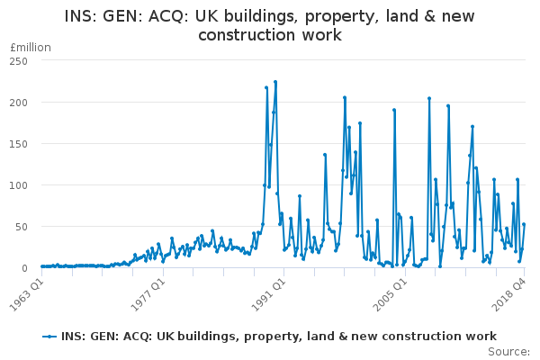 Download this time seriesINS: GEN: ACQ: UK buildings, property, land & new construction work