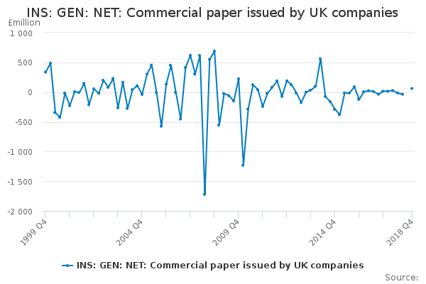 Download this time seriesINS: GEN: NET: Commercial paper issued by UK companies