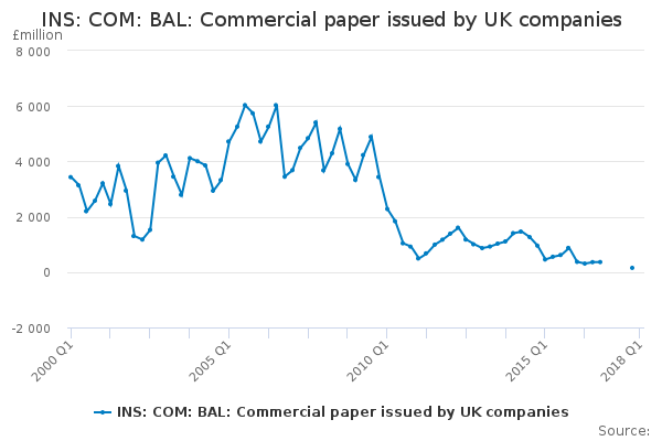 Download this time seriesINS: COM: BAL: Commercial paper issued by UK companies