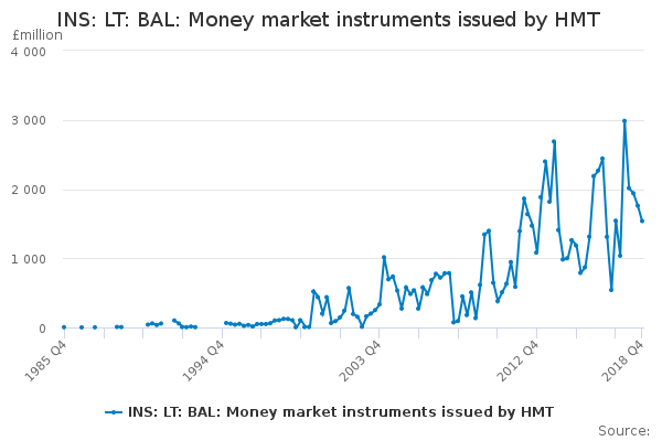 Download this time seriesINS: LT: BAL: Money market instruments issued by HMT