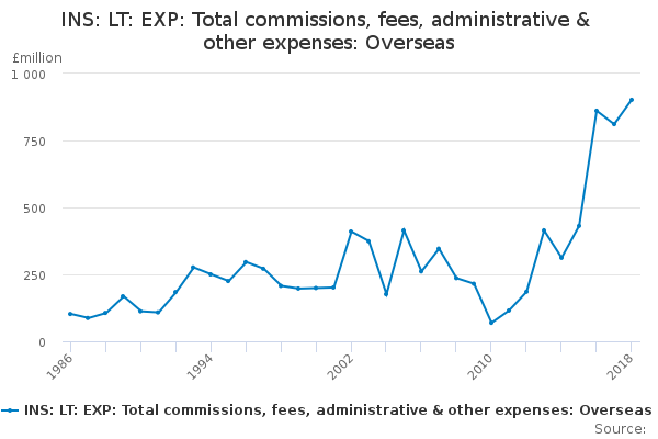 Download this time seriesINS: LT: EXP: Total commissions, fees, administrative & other expenses: Overseas