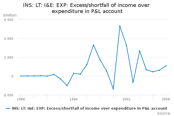 Download this time seriesINS: LT: I&E: EXP: Excess/shortfall of income over expenditure in P&L account
