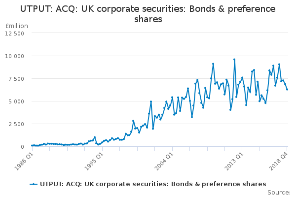 Download this time seriesUTPUT: ACQ: UK corporate securities: Bonds & preference shares