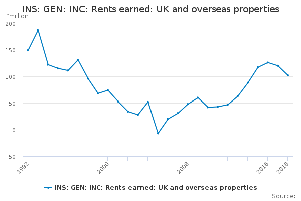 Download this time seriesINS: GEN: INC: Rents earned: UK and overseas properties