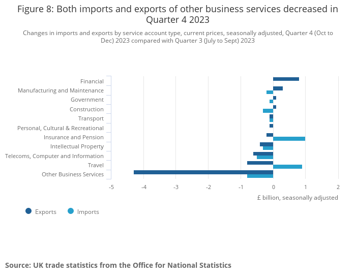 Figure 8: Both imports and exports of other business services decreased in Quarter 4 2023