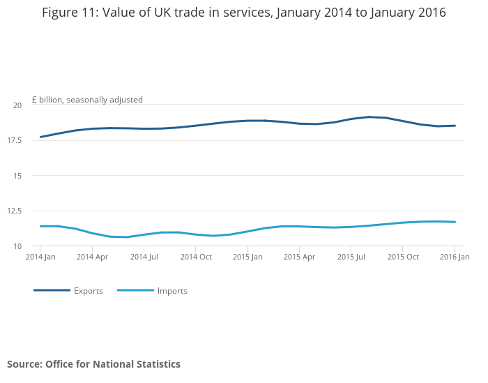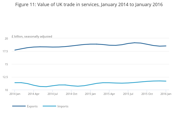 Figure 11: Value of UK trade in services, January 2014 to January 2016