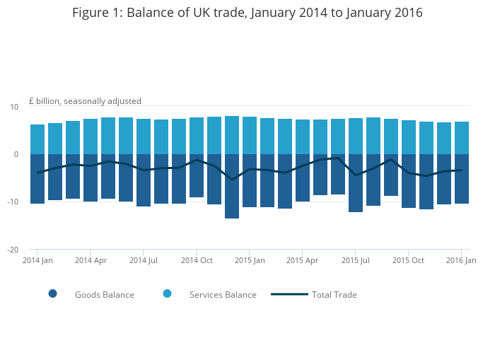 Figure 1: Balance of UK trade, January 2014 to January 2016