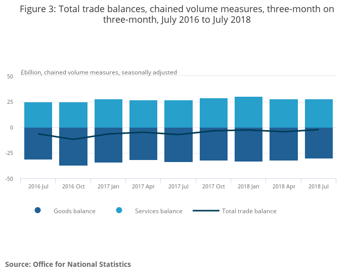 .png (69.1 kB)Figure 2 shows UK trade balances on a three-month on three-month basis between July 2016 and July 2018. The total trade balance ranged from a deficit of £10.7 billion in the three months to October 2016, to a deficit of £3.4 billion in the three months to July 2018.