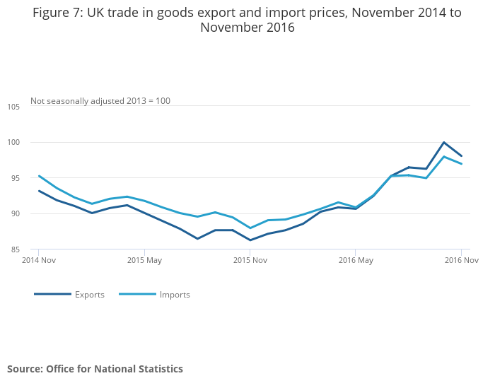 Figure 7: UK trade in goods export and import prices, November 2014 to November 2016
