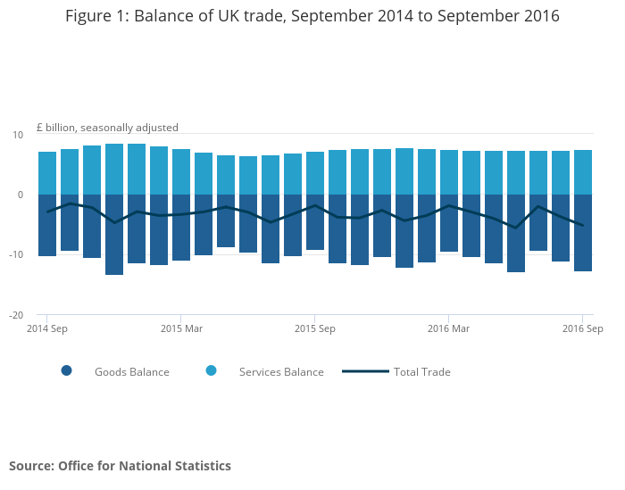 Figure 1: Balance of UK trade, September 2014 to September 2016