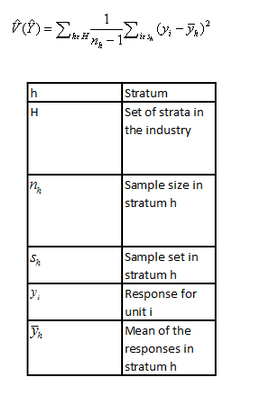 The standard errors of the Annual ITIS survey are estimated using a stratified expansion estimator. The equation for the variance is as follows:
