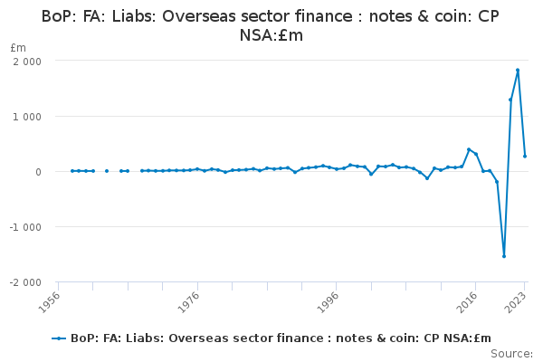 Download this time seriesBoP: FA: Liabs: Overseas sector finance : notes & coin: CP NSA:£m