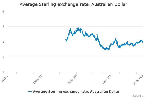 Download this time seriesAverage Sterling exchange rate: Australian Dollar