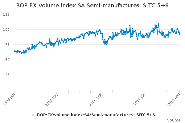 Download this time seriesBOP:EX:volume index:SA:Semi-manufactures: SITC 5+6