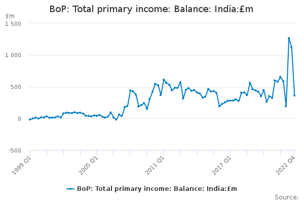 Download this time seriesBoP: Total primary income: Balance: India:£m
