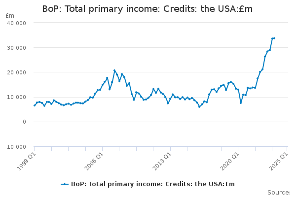 Download this time seriesBoP: Total primary income: Credits: the USA:£m