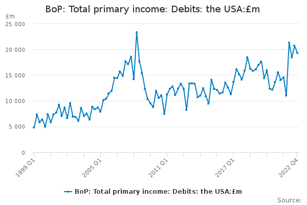 Download this time seriesBoP: Total primary income: Debits: the USA:£m