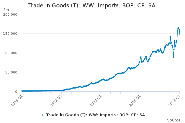 Download this time seriesTrade in Goods (T): WW: Imports: BOP: CP: SA