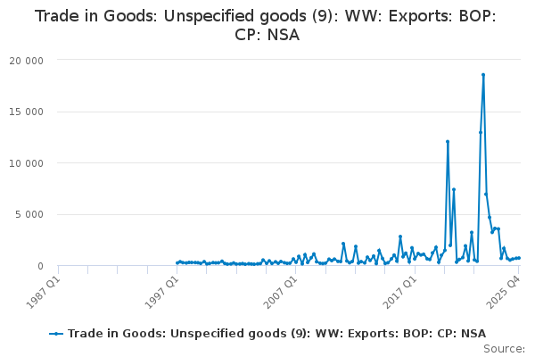 Download this time seriesTrade in Goods: Unspecified goods (9): WW: Exports: BOP: CP: NSA