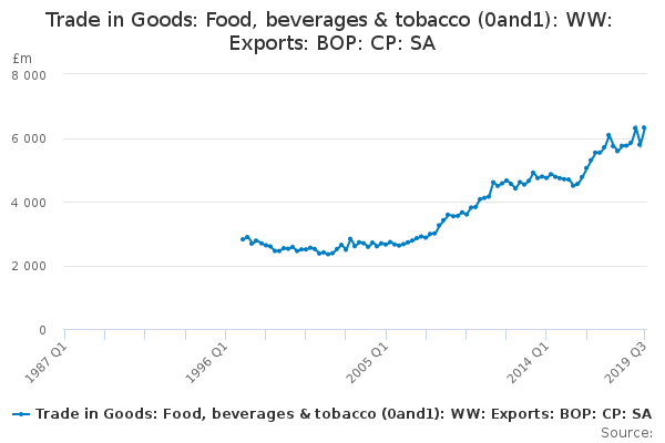 Download this time seriesTrade in Goods: Food, beverages & tobacco (0and1): WW: Exports: BOP: CP: SA
