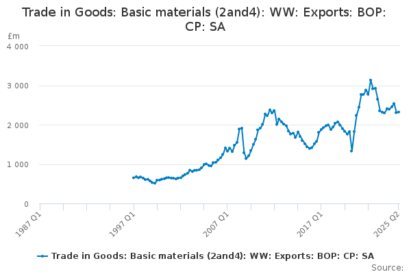 Download this time seriesTrade in Goods: Basic materials (2and4): WW: Exports: BOP: CP: SA