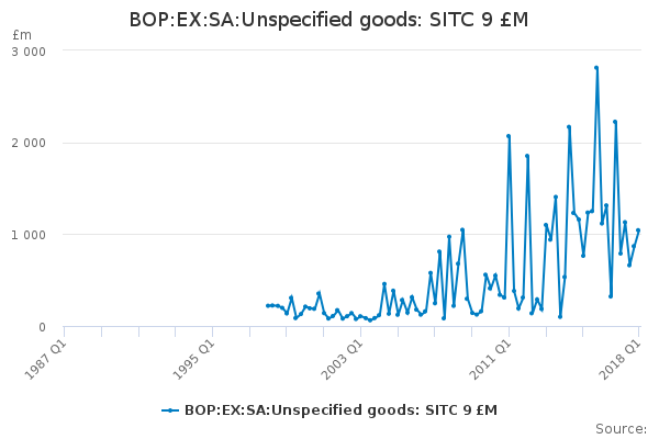 Download this time seriesBOP:EX:SA:Unspecified goods: SITC 9 £M