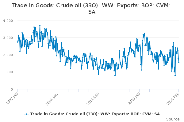 Download this time seriesTrade in Goods: Crude oil (33O): WW: Exports: BOP: CVM: SA