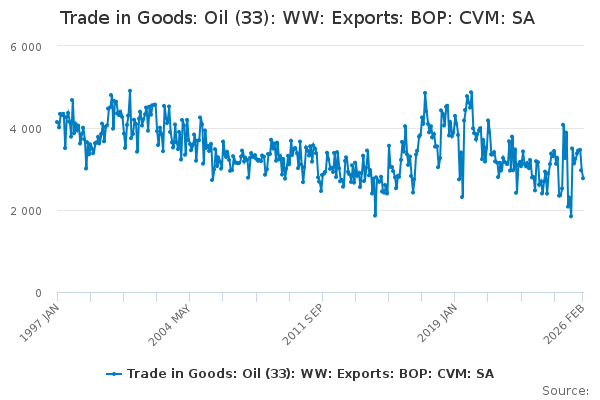 Download this time seriesTrade in Goods: Oil (33): WW: Exports: BOP: CVM: SA