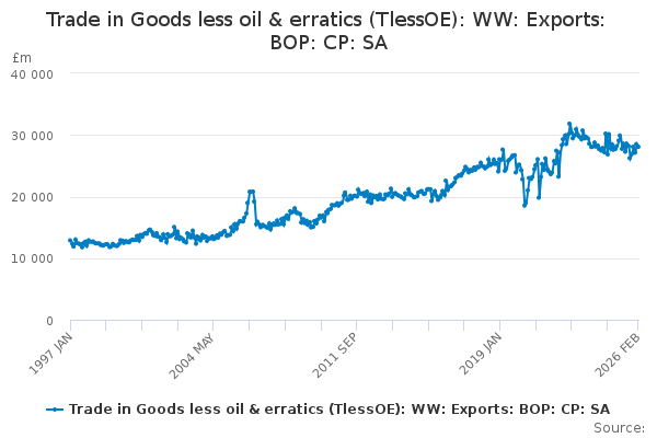 Download this time seriesTrade in Goods less oil & erratics (TlessOE): WW: Exports: BOP: CP: SA