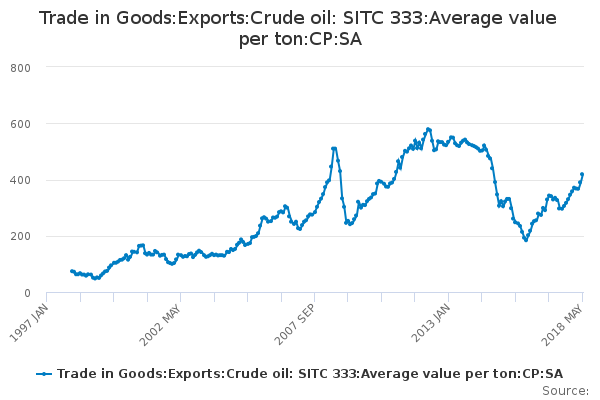 Download this time seriesTrade in Goods:Exports:Crude oil: SITC 333:Average value per ton:CP:SA