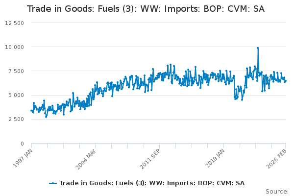 Download this time seriesTrade in Goods: Fuels (3): WW: Imports: BOP: CVM: SA