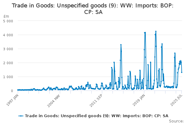 Download this time seriesTrade in Goods: Unspecified goods (9): WW: Imports: BOP: CP: SA